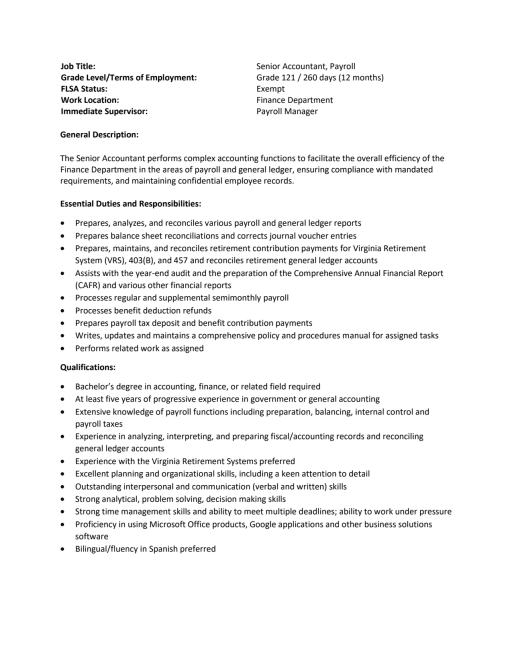 Payroll Accountant Job Description